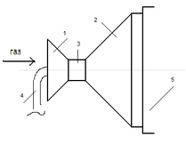 На рисунке5: 1-конфузор, 2-диффузор, 3-сопло, 4-форсунка, 5-шламосборник.
