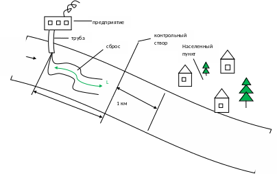 Контрольный створ должен быть на расстоянии 1км от населенного пункта вверх по течению.