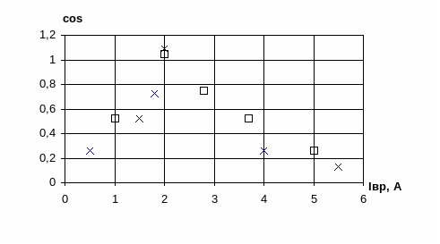 Построить зависимости Iст(IВ.Р.) и cos(IВ.Р. ).