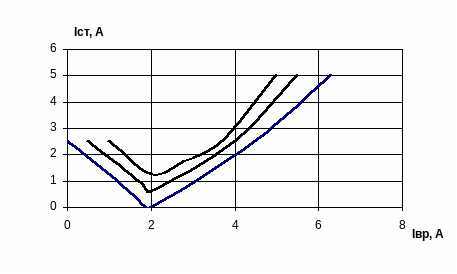 Регулируя реактивную мощность снять зависимость фазного тока статора Iст от тока возбуждения ротора IВ.Р. для трех значений активной мощности P = 0, Pном/3, Pном*2/3.