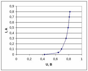 6. Снимем и построим в.а.х. диода в прямом направлении.