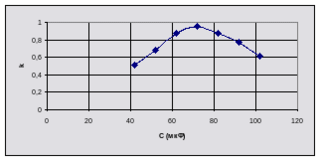| k | 0,51 | 0,68 | 0,87 | 0,95 | 0,88 | 0,77 | 0,61 |