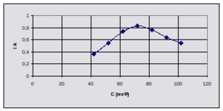 | I (A) | 0.36 | 0,55 | 0,74 | 0,83 | 0,76 | 0,64 | 0,55 |