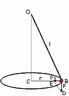 Для вывода формулы периода математического маятника заставим его описывать конус. Теперь, если мы будем наблюдать за маятником сбоку, то увидим, что маятник будет колебаться влево вправо. Но, так как все-таки он движется по окружности, то период будет равен: T = 2пr/v (1). При малых углах, возвращающая сила (P1) направлена по радиусу, т.е. равна силе P1=mv2/r (2). Из подобия треугольников OBC и DBE следует что BE/BD = CB/OB т.к. OB = l и BD = P = mg, то отсюда P1 = mgr/l (3) приравняв части получившихся формул 2 и 3: mv2/r = mgr/l, получим что v = rvg/l (4) теперь подставим значение скорости из формулы 4 в формулу 1 получим T = 2пvl/g Т.е. период математического маятника зависит только от длины подвеса (на одной географической широте).