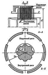 Угол закручивания при колебаниях крутящего момента должен находиться в пределах 0 <φ <φ max. Несоблюдение этого условия приводит к ударам ограничителей в обеих крайних точках или в одной из них. Размеры пружины (D, d, i), соответствующие данной характеристике, определяют обычно методом подбора по формулам с учетом конструктивных размеров муфты. Условие прочности пружины: τ = kв8DT max / (π d3r z)≤[τ], где Tmax - момент, соответствующий упору ограничителей.