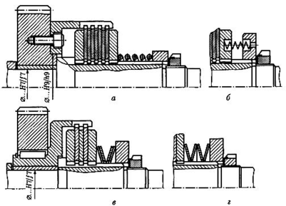 На рис., а фрикционные диски сжимает одна центральная пружина сжатия, на рис., б - несколько расположенных по окружности пружин, на рис. , в - тарельчатые пружины. Если тарельчатые пружины расположить так, как показано на рис., г, то жесткость комплекта пружин будет меньше, что повысит точность срабатывания муфты.