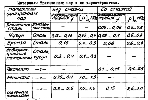 В качестве фрикционных материалов в современных муфтах используются металлические и смешанные пары трения. Данные о фрикционных материалах и их характеристиках приведены в табл.