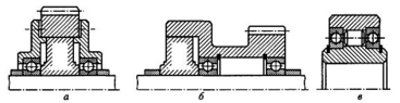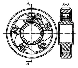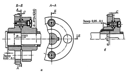 уфты свободного хода, или обгонные муфты, передают вращающий момент только в одном направлении. Их применяют в станках, автомобилях, мотоциклах, велосипедах и т. д. В велосипедах, например, они передают крутящий момент от педалей на колесо и в то же время позволяют колесу свободно катиться при неподвижных педалях. Наибольшее распространение в машиностроении получили роликовые муфты (см. рис.). Внутреннюю деталь такой муфты называют звездочкой, а внешнюю - обоймой. Как та, так и другая могут быть ведущей частью муфты. Для правильной работы муфты важно, чтобы обойма была концентрична звездочке. Для этого обойму с установленной на ней деталью базируют по валу или по другим деталям на том же валу. На рис. а, б приведены возможные схемы базирования обойм в случае применения муфт по ОСТ 27-60-721-84. Муфта на рисунке изображена в виде контура, а деталь, связанная с обоймой, условно показана в виде зубчатого колеса (вместо зубчатого колеса может быть любая деталь). Исполнение по рис. не единственное и дано в качестве одного из возможных конструктивных решений.