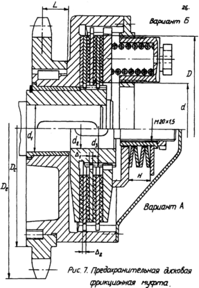 реди фрикционных дисковые муфты (см. рис.7) получили наибольшее распространение из-за ….. возможности варьирования в широких пределах диаметральными размерами и числом пар поверхностей трения. Это позволяет получить оптимальные габариты и упрощает задачу создания встроенных конструкций.