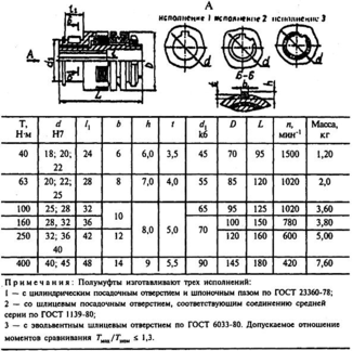сновные размеры фрикционных предохранительных муфт в зависимости от передаваемого момента принимают по ГОСТ 15622-96. (Размеры в мм)