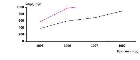 В головной компании и дочерних предприятиях созданы службы развития. Они анализируют производственные и сбытовые возможности, управляют разработкой инновационных проектов, заказывают научно-исследовательские и опытно-конструкторские работы. Финансирование идет из общего фонда развития (в 1997 г., например, он составлял 22 млрд. руб.). В итоге освоен выпуск более 250 новых видов продукции (здесь и комплектующие к рукавам высокого давления, и композиционные материалы, и кормоизмельчители, и трубосварный стан, и запчасти для импортной техники, и изделия из промышленного трикотажа, а также одежда и обувь). Кроме того, оказывается более 20 видов услуг. Это сыграло не последнюю роль в росте объема реализации (рис. 13).