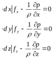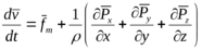 - второй закон Ньютона для единицы массы. Два слагаемых учитывают, что частица не одна (специфика жидкости).