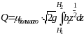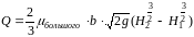 , то для большого прямоугольного отверстия в тонкой вертикальной стенке при постоянном напоре bz = b, интегрируя выражение для расхода получим: