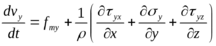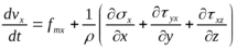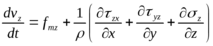 - второй закон Ньютона для единицы массы. Два слагаемых учитывают, что частица не одна (специфика жидкости).