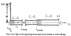 12.3. Простой трубопровод при истечении в атмосферу.