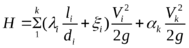 где λ i и ξ i – коэффициент сопротивления трению и суммарный коэффициент местных сопротивлений на каждом участке, Vi – средняя скорость на каждом участке, Vk – скорость потока на выходе из трубопровода в резервуар. Коэффициент Кориолиса αk = 1 – для турбулентного режима течения, αk= 2 для ламинарного режима течения.