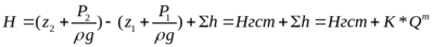 где Σh – есть характеристика трубопровода, которая является степенной функцией расхода. Величина К – коэффициент сопротивления трубопровода, а показатель степени m имеет значение, зависящее от режима течения жидкости(ламинарный или турбулентный).