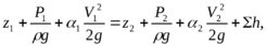 Это уравнение показывает, что имеющаяся в нашем распоряжении потенциальная энергиия в виде гидростатического напора затрачивается на преодоление разности скоростных напоров и потерь в местных сопротивлениях и на трение по длине.