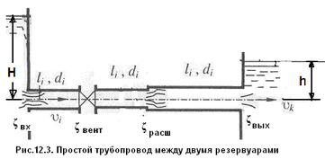 Трубопровод называют простым, если жидкость транспортируется по нему от питателя к приемнику без ответвлений потока, но может иметь различные диаметры и включать местные сопротивления.