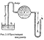 Вакуум в жидкости А можно измерять при помощи U-образной трубки (на рис.3.8) или перевернутой U-образной трубки, один конец которой опущен в сосуд с жидкостью (см. рисунок слева).