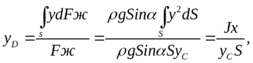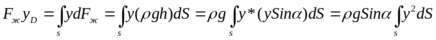 здесь hc = (yc Sinα)— глубина расположения центра тяжести площади S.