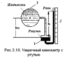 Если при помощи такого манометра, обычно заполняемого ртутью, измерена разность давлений Р1 и P2 в жидкости плотностью ρ, которая полностью заполняет соединительные трубки, то