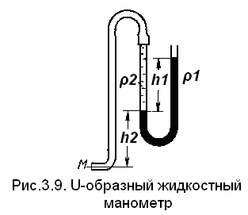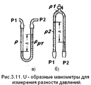 3.6.3. Для измерения разности давлений в двух точках служат дифференциальные манометры, простейшим из которых является U-образный манометр (рис.3.11а).