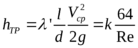 Формуле Вейсбаха-Дарси для определения потерь на трение при ламинарном движения