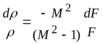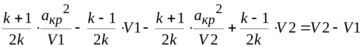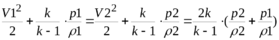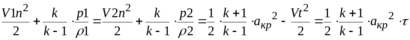 соотношения скоростей до и после скачка из (2) (p2-p1) с учетом (1) :