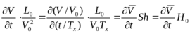 Здесь помимо характерного масштаба времениTo, характеризующего процесс течения в целом введено характерное локальное времяTx, характеризующее локальный нестационарный процесс. Например, To- время обтекания цилиндра с характерным линейным размером Lo=d и скоростью Vo=V∞, Tx- период схода вихревых шнуров за цилиндром в вихревой дорожке Кармана.