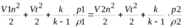 p1+ ρ1V1n2=p2+ ρ2V2n2 (3)