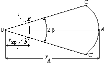 (будем считать ее характеристикой 2‑го семейства), выходящей из точки А на дуге радиуса rA . При этом точка А1 находится на пересечении луча r1 = 0A1
