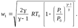 собенности течения газа в конфузорах. Если скорость течения газа меньше критической, то в качестве сопла применяют простой сходящийся насадок – конфузор. Состояние газа и скорость течения в различных сечениях конфузора можно определить по тем же формулам, что и для сверхзвукового сопла. Однако поток в конфузоре имеет ряд особенностей. При дозвуковом течении давление на срезе P1 практически равно Pокр, так как при этом режиме любое изменение давления в атмосфере в виде волны давления проникает внутрь сопла, вызывая изменение давления перед соплом и, соответственно, изменение скорости истечения. Поэтому, в отличие от сверхзвукового сопла, в конфузоре скорость истечения определяется не его формой, а только давлением в камере перед конфузором. Скорость истечения определяется по формуле (6.12):