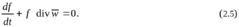 роме массы m есть и другие (скалярные, векторные или тензорные) величины, остающиеся во время движения постоянными в любом индивидуальном объеме среды. Например, число молекул или атомов в единице объема n (концентрация частиц), плотность заряда e и т. д. Обозначив плотность такой сохраняемой величины через f, можно записать уравнение