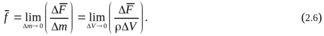 аспределение сил в сплошной среде. В динамике сплошных сред принято выделять два класса действующих на частицы среды сил: 1) объемные (массовые); 2) поверхностные. Силы, распределенные по объему V, называются объемными силами или массовыми. В отличие от динамики системы дискретных точек в динамике сплошных сред имеют дело не с самими силами, а с плотностью их распределения в пространстве. Под плотностью распределения объемных сил f понимают предел отношения главного вектора массовых сил ΔF, действующих на элемент массы Δm, к этой массе: