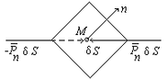 где P – главный вектор сил, приложенных с одной стороны к малой площадке S.