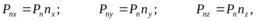 где Pnx – проекция на ось x напряжения, приложенного к площадке с ортом нормали n.