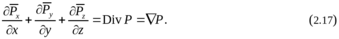 Рассмотрим механический смысл входящего в правую часть уравнения (2.15) вектора (Px / x + Py / y + Pz / z). Выражение, стоящее в правой части (2.16), определяет вектор, называемый дивергенцией (расходимостью) тензора P, так что