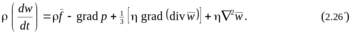 еперь, подставив уравнение связи (2.25) в основное уравнение динамики (2.18) и проведя векторные операции, получим основное уравнение Навье–Стокса динамики вязкого газа: