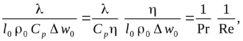 / (l0 0 w0) = (l0 w0) / v0 = Re – число Рейнольдса, показывающее отношение сил вязкости и конвективных сил.