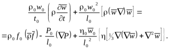 риведем к безразмерному виду уравнение Навье–Стокса (2.26'), для чего введем масштабы переменных величин, которым припишем индекс «нуль». Тогда (2.26') можно представить следующим образом: