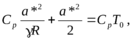 р и м е р 2. Рассмотрим истечение газа из баллона большой емкости через суживающийся патрубок в некоторую камеру. Пусть вначале разность давлений между баллоном и камерой была невелика и скорость истечения через патрубок не превосходила скорости звука. Будем теперь медленно понижать давление в камере, тогда скорость истечения w начнет повышаться. Создаваемые в камере возмущения (уменьшением давления) будут распространяться против течения из камеры через патрубок в баллон до тех пор, пока скорость в патрубке не достигнет скорости звука. После этого возмущения уже не смогут проникать в баллон, так как они будут сноситься потоком, имеющим ту же скорость, что и скорость распространения возмущений в газе. Продолжающееся понижение давления не отразится на изменении скорости истечения, и она будет постоянна и равна скорости звука (w = a = const). Это явление носит название запирания потока. Если где‑нибудь в потоке скорость газа w станет равна местной скорости звука a, то такая скорость (w = a*) называется критической скоростью. Критическими будут и соответствующие значения: T*, P* и Выразим критическую скорость через параметры торможения, тогда уравнение энергии для критического сечения примет вид