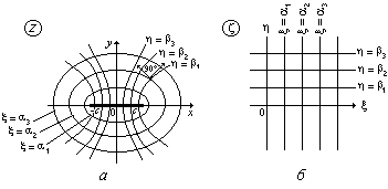 Итак, преобразующая функции z = c ch переводит эллипсы и гиперболы из z‑плоскости соответственно в вертикальные и горизонтальные линии в ‑плоскости;