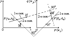 в некоторой точке p (x0, y0) плоскости x, y известны составляющие скорости wx0, wy0 и значения функций p0, q0. Элементу характеристики pN соответствует элемент характеристики 2‑го семейства – прямая в плоскости p, q . Эта прямая перпендикулярна к линии pN.