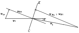 Итак, мы имеем поток с новыми параметрами: скорость больше, а Р, Т, – немного меньше. Возмущения из этой новой области должны быть ограничены новой характеристикой – СК ', которая вследствие поворота потока и увеличения числа М располагается правее СК, (см.