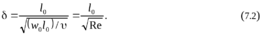ассматривая 1‑ю строку, замечаем, что ее последний член намного больше предпоследнего, так как << l0. В то же время этот последний член должен быть одного порядка со всеми остальными членами 1‑й строки. Следовательно, получим для толщины погранслоя выражение