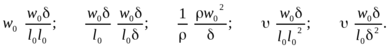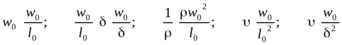 Проведем оценку порядков величин членов двух первых уравнений системы (7.1), считая масштаб давления P равным масштабу скоростного напора w0 2. Тогда:
