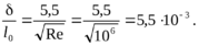 апример из опыта, уточненная толщина погранслоя для плоской пластинки при ламинарном режиме течения составляет