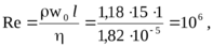 Поясним эти качественные соображения примером. Оценим толщину погранслоя на конце пластинки (длиной l = 1 м), обтекаемой воздухом при T = 300 К со скоростью w0 = 15 м/с. Плотность воздуха при этих условиях и атмосферном давлении составляет = 1,18 кг/м3, а коэффициент динамической вязкости = 1,82 · 10–5 Н·с·м–2. Тогда