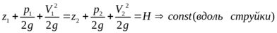 Это уравнение полного напора, так как члены, входящие в него имеют размерность длины было выведено Даниилом Бернулли в 1738 г.